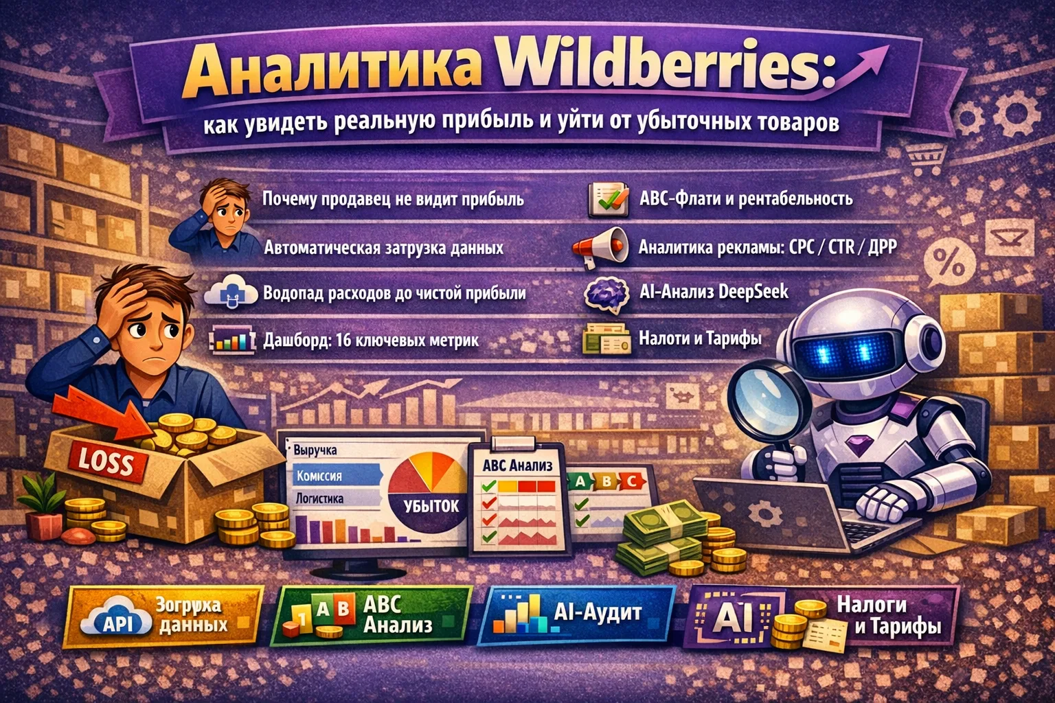 Многие продавцы Wildberries сталкиваются с ситуацией: выручка в личном кабинете радует, но на счету денег нет. Комиссии, логистика, реклама, хранение, возвраты — расходы «съедают» маржу. Без детальной аналитики невозможно понять, какой товар действительно приносит прибыль, а какой работает в минус.